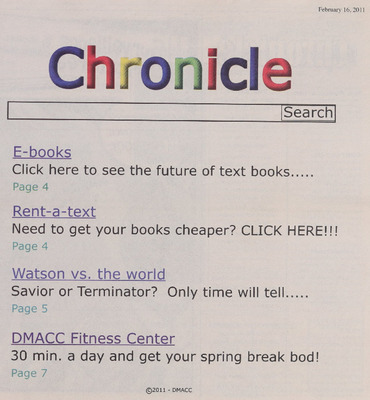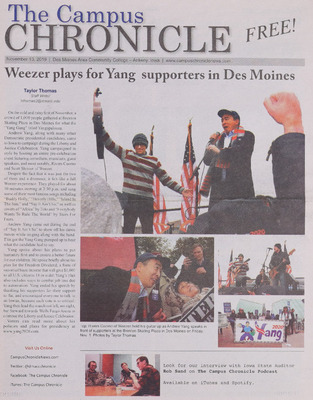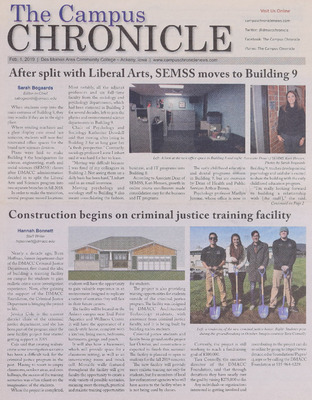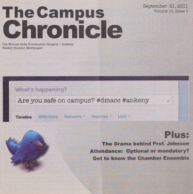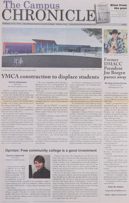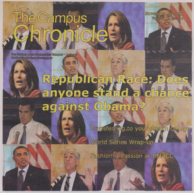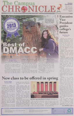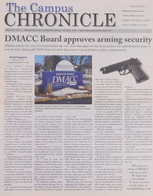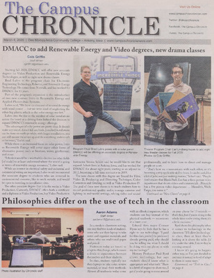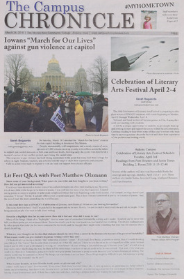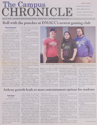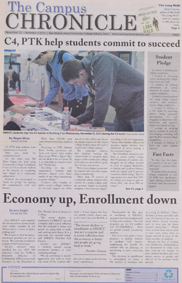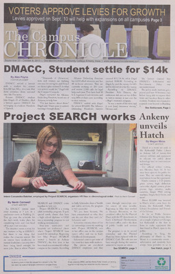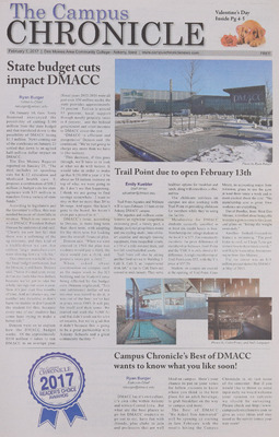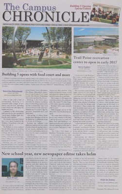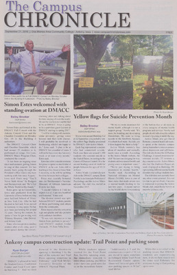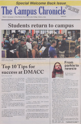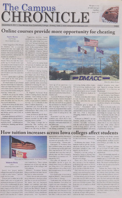 The Campus Chronicle / The Chronicle appears to be the second, and current, iteration of the student newspaper at the Ankeny campus. In 2016 the paper moved much of its content to the web, publishing paper copies just a few times a semester. The Chronicle follows The Eclectic, which ran 1974 - March 1976.