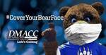 Graphic created by DMACC Marketing showing the DMACC Bear wearing a face mask, along with the phrase: #CoverYourBearFace. This image was used in various communications.