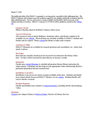 March 17, 2020This message was placed on the Library's website March 17, 2020.